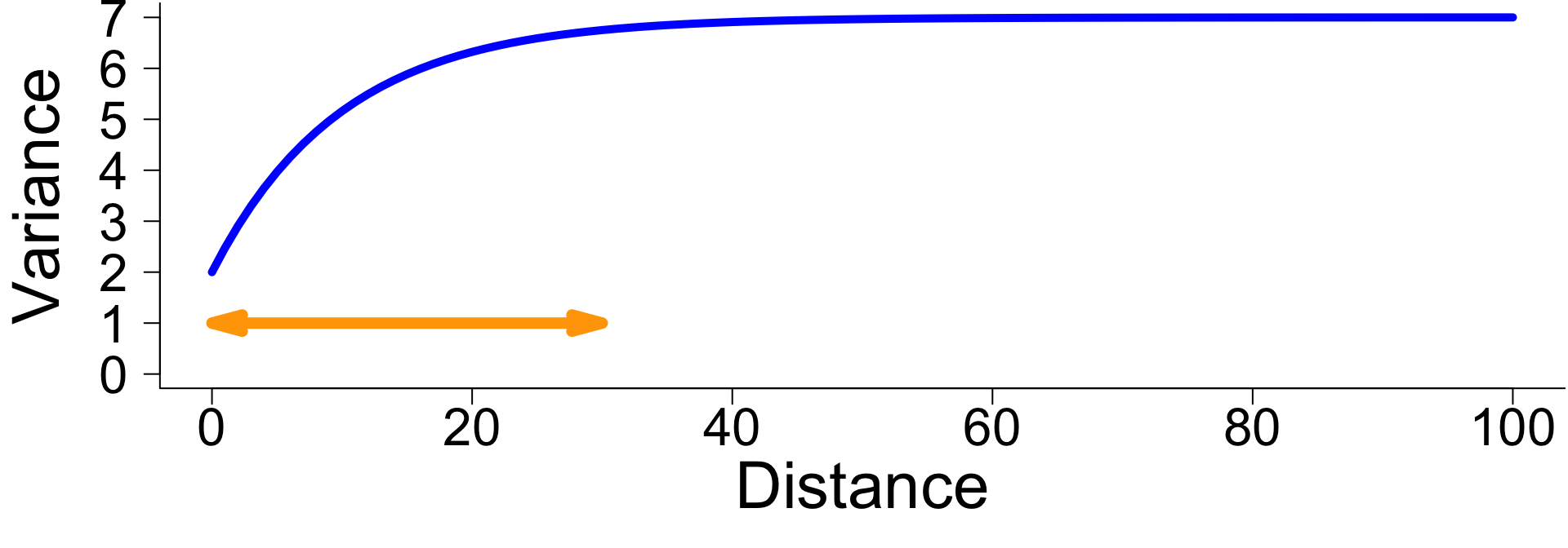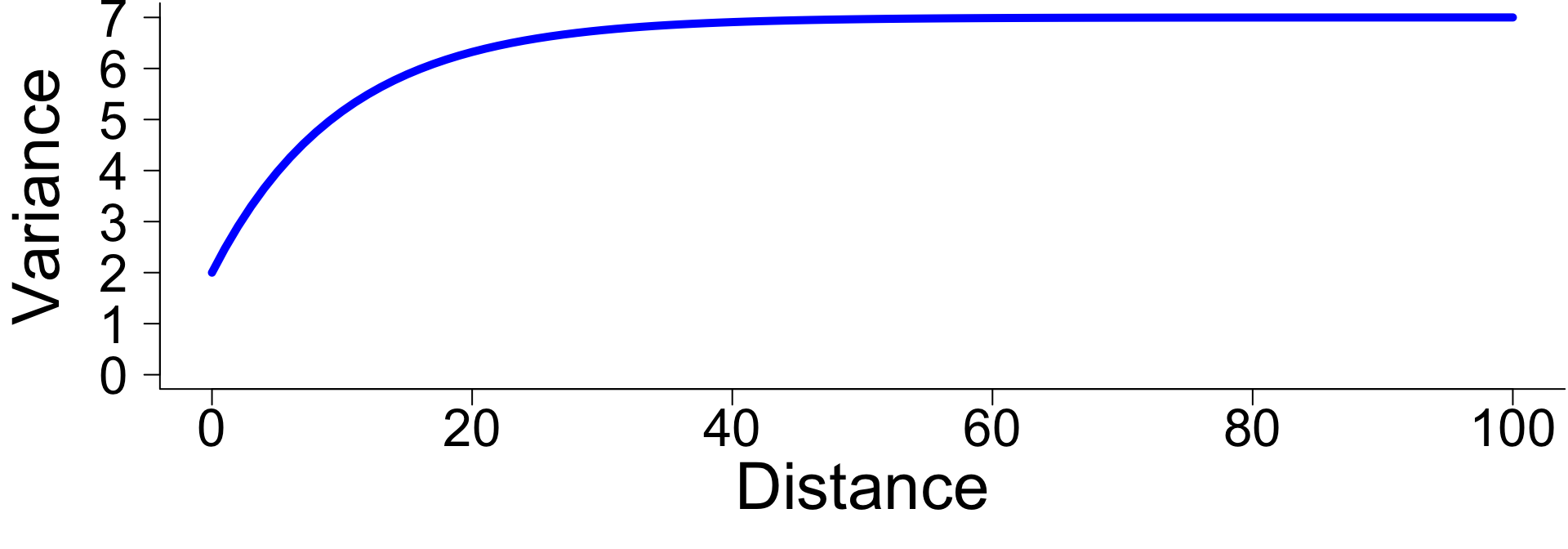 What this equation means conceptually is that the variance associated to \(\mathbf{b}\) is not a constant, it changes based on distance (across space, time, phylogeny, etc.). This is known as a Gaussian process.